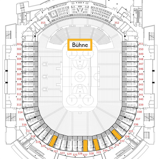 - Die Tickets sind für folgende Loge gültig: 321, 327, 329, 333, zwischen Unter und Oberrang