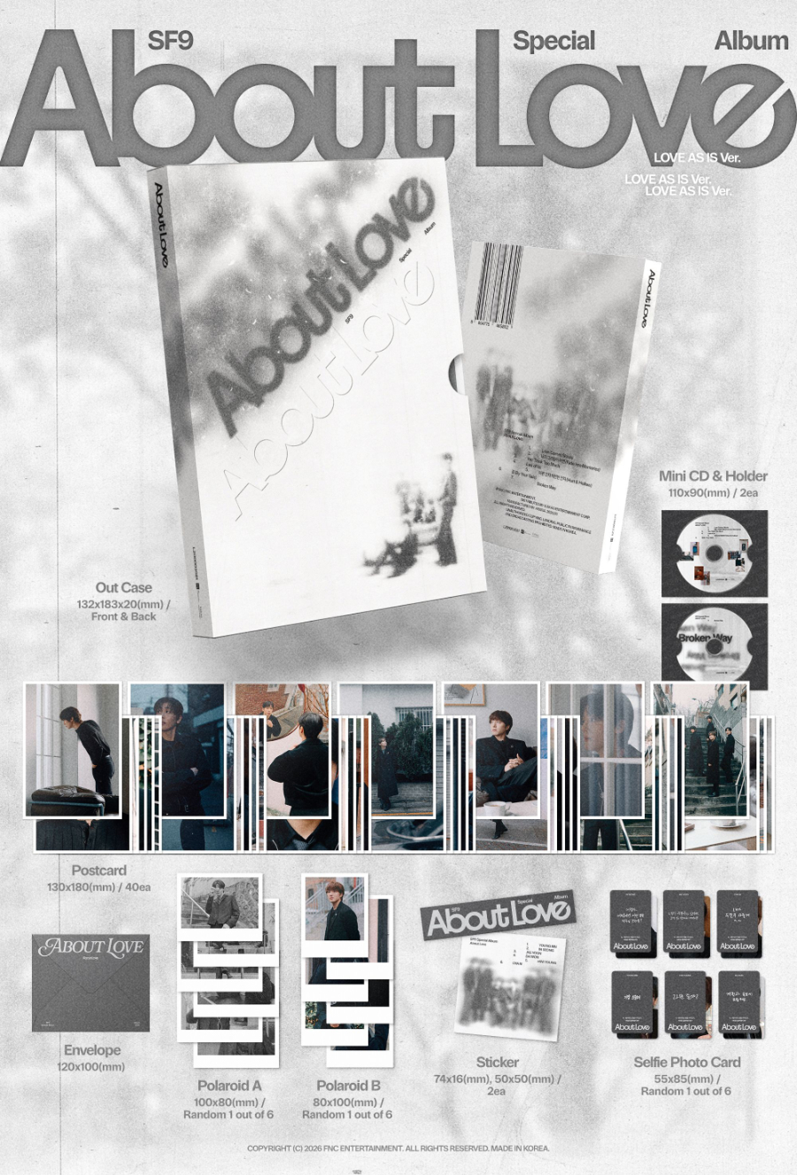 - Selfie Photocard: 55 mm × 85 mm / Random 1 out of 6 types included